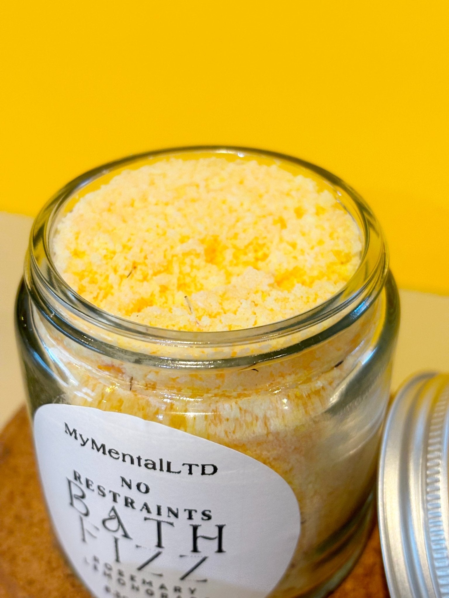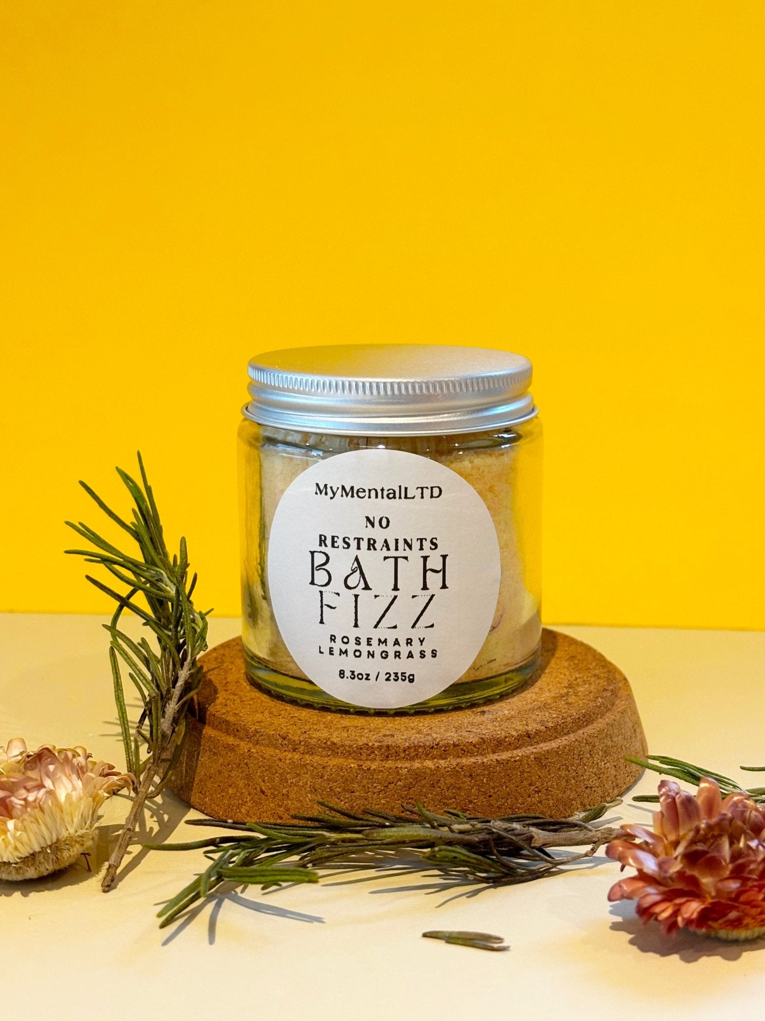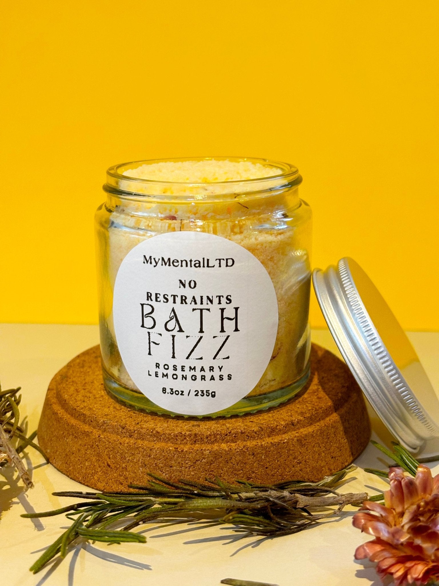 Together, these ingredients create a dynamic and uplifting atmosphere. As you soak in the bath, the fizz dissolves, releasing a symphony of scents that fill the air. The resulting environment fuels your focus, heightens your cognitive function, and prepares you to conquer your tasks with renewed energy and determination. The No Restraints Bath Fizz is more than a bath product; it's a complete sensory experience that combines relaxation and invigoration, transforming your bath into a rejuvenating ritual.