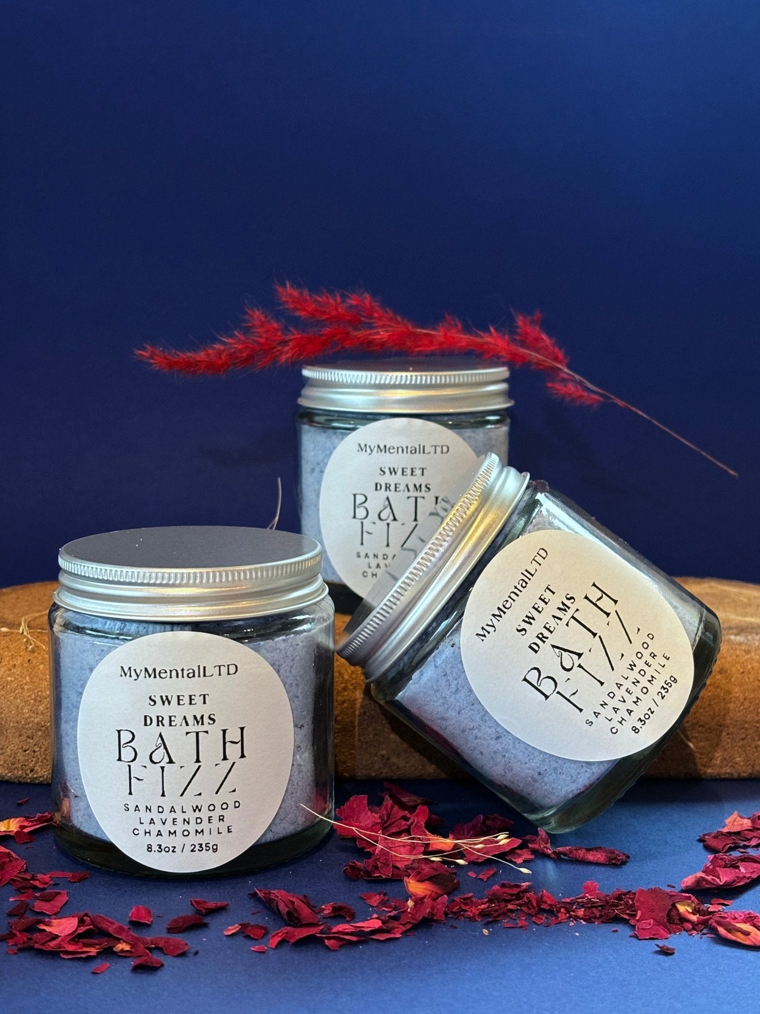 Drift into a peaceful slumber with our Sweet Dreams Bath Fizz. Expertly crafted with the soothing scents of Lavender, Chamomile, Sandalwood, and Rose Petals, this bath fizz is designed to promote a restful sleep. The calming aroma of lavender, coupled with the comforting scent of chamomile, the warm, woody fragrance of sandalwood, and the romantic notes of rose petals, creates a tranquil atmosphere that encourages relaxation and sleep. Immerse yourself in this serene bath experience and emerge feeling rested and ready for a good night's sleep.
